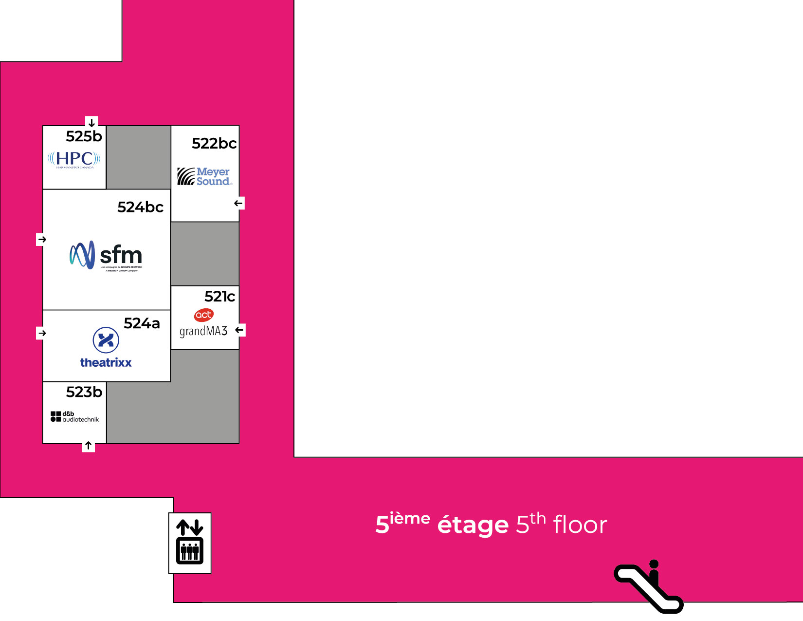 Les salles démo d'EXPO-SCÈNE sont situées au 5e étage du Palais des congrès.